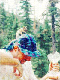 Here I’m seen modeling the ever trendy Live Gopher Hat Pin. All the rage on the runways of Paris and Milano this Spring, it’s perfect for the casual evening with friends. This handy wash-n-wear ground squirrel makes the perfect accessory, here adding character and fun to my simple hiking headgear. Ground squirrel: Mr. Roget’s of Beverly Hills, $75. Hat: Boulder Army Store, @$7. T-shirt: Mr. Roget’s of Beverly Hills, $135. Trail mix: King Soopers, $1.29/lb. Photograph by William Bower, MD.