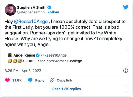 I don’t know if anyone has been following the NCAA women’s championship kerfuffle with Caitlin Clark and Angel Reese. In short, both are fantastic players and both engage in a little of what we ballers call “smack.” Clark, Iowa’s superstar, likes to do the John Cena/you can’t see me gesture, and in the final the other day, LSU’s Reece did it to her as the game ended.